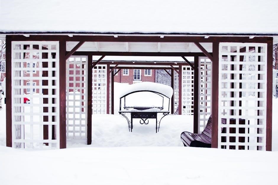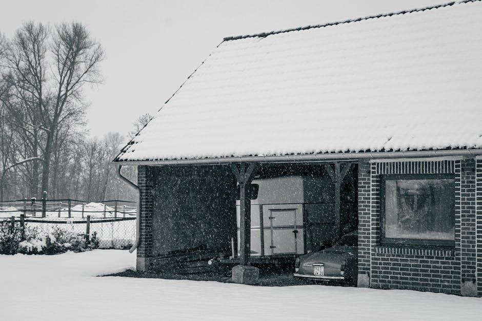 Common truss types include gable trusses and shed trusses, selected based on roof style and span. PDF plans often include load calculations, ensuring the carport meets local building codes. Proper bracing and connections are highlighted, preventing collapse and guaranteeing long-term stability, protecting vehicles and occupants.